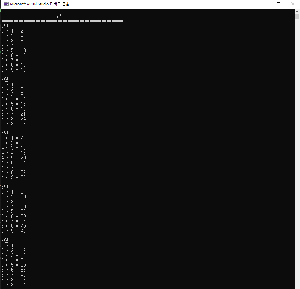 2022.02.14 for문을 이용한 구구단과 아스키 코드값 출력