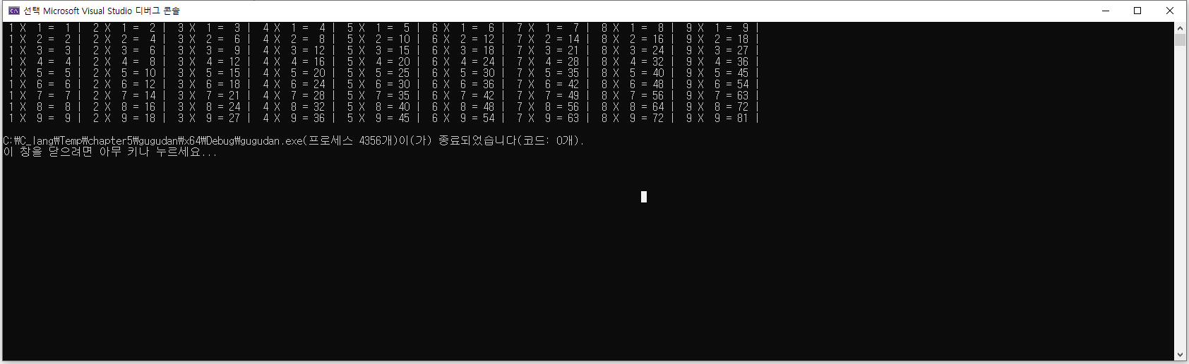 //구구단이 저장된 2차원 배열 출력