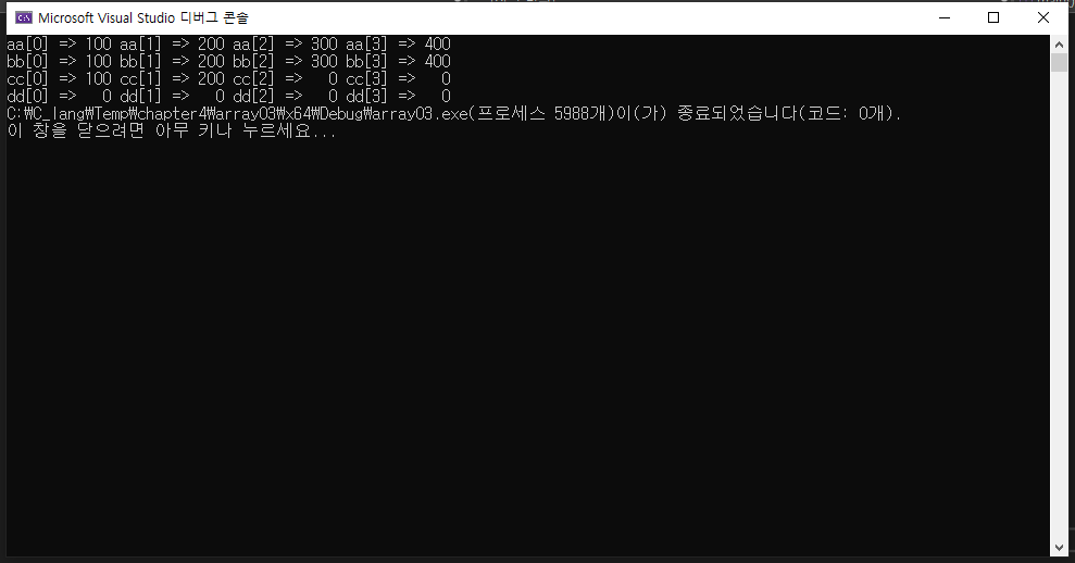 for (int i = 0; i < 4; i++) //dd배열 반복 출력